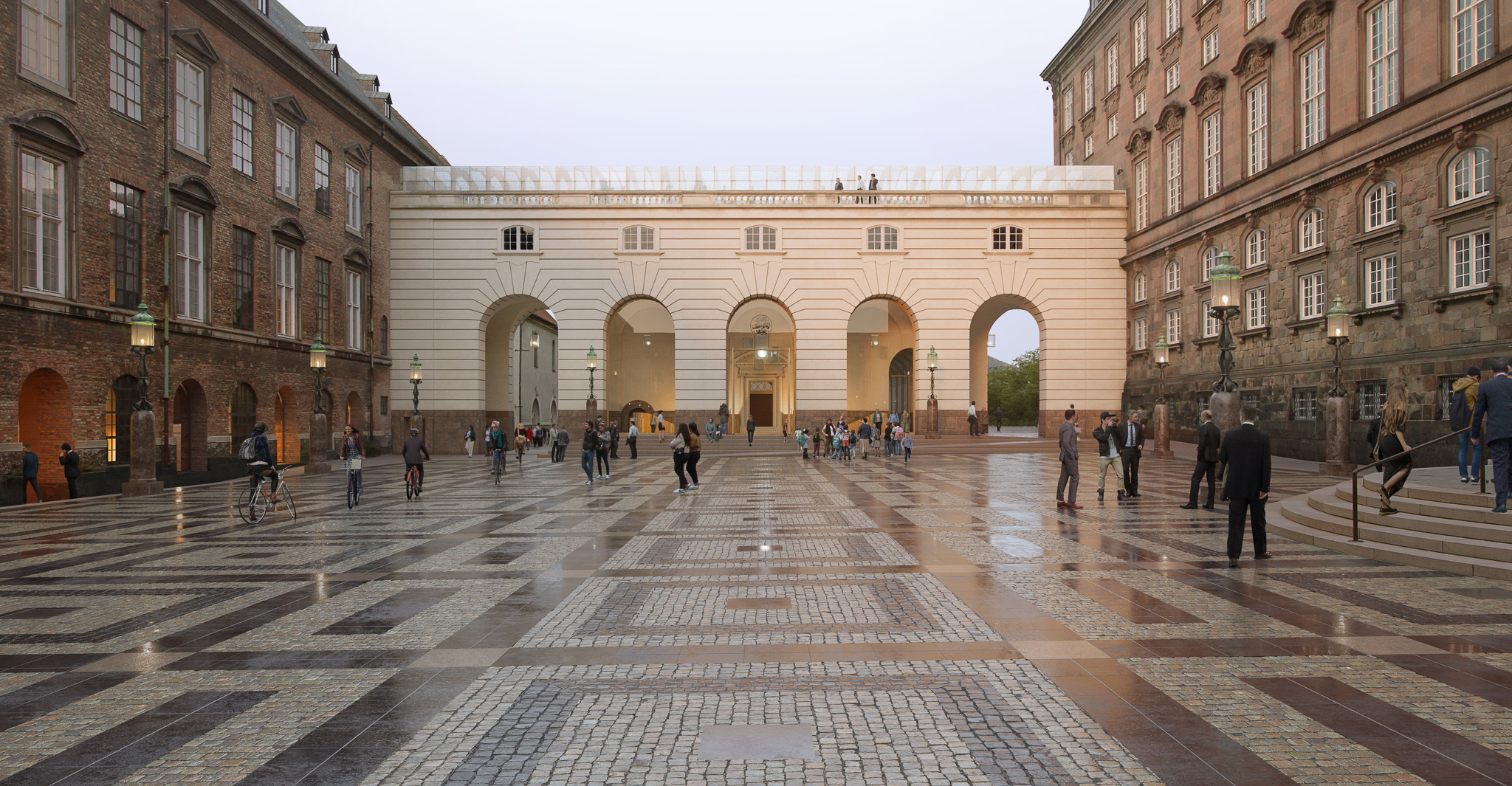 The square of the Danish Parliament has always been the centre of practicality and activity. Historically, it has connected the palace to the harbour and the surrounding city. This public, active, and vibrant everyday space clearly represents the open and equal Danish democracy, where politicians, civil servants, citizens, visitors, employees and passers-by meet each other at eye level.